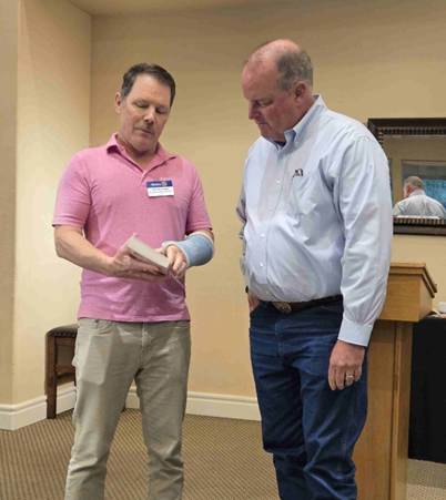 Steve Plume contributed $25 for his new badge which he received from Diana for the one that was lost.