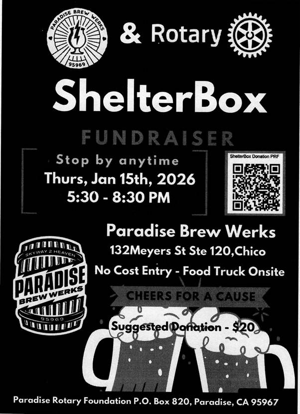 Paradise Rotary is having a fundraiser to raise money for a Shelterbox Kit. See the box above