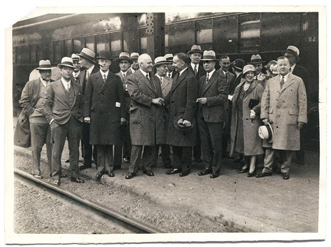 Members of the Rotary Club of Winnipeg travel by train to a district conference in 1932.